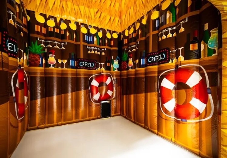 Opblaasbare beachbar tent van 5,5×5,5 meter.